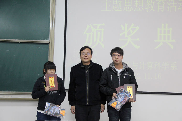 11月16日,我系在报告厅三隆重举行了本学期主题思想教育活动颁奖典礼,系领导李超、赵健、2011级和2012级全体同学及相应班主任、辅导员老师参加了颁奖典礼。