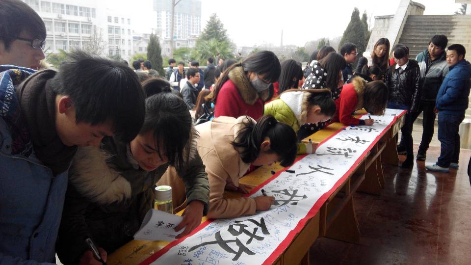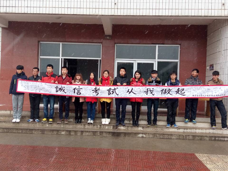 伴着纷飞的雪花,全体学生坚定的拿起笔认真的写下自己的名字,写下对诚信考试的决心与信心。黄老师表示此次活动不仅是鼓励学生认真复习,诚信考试,而且让学生养成良好的学习习惯,营造良好的学习氛围。同时,老师们也为即将参加期末考试的同学们加油,期待着学生们获得优异的成绩。