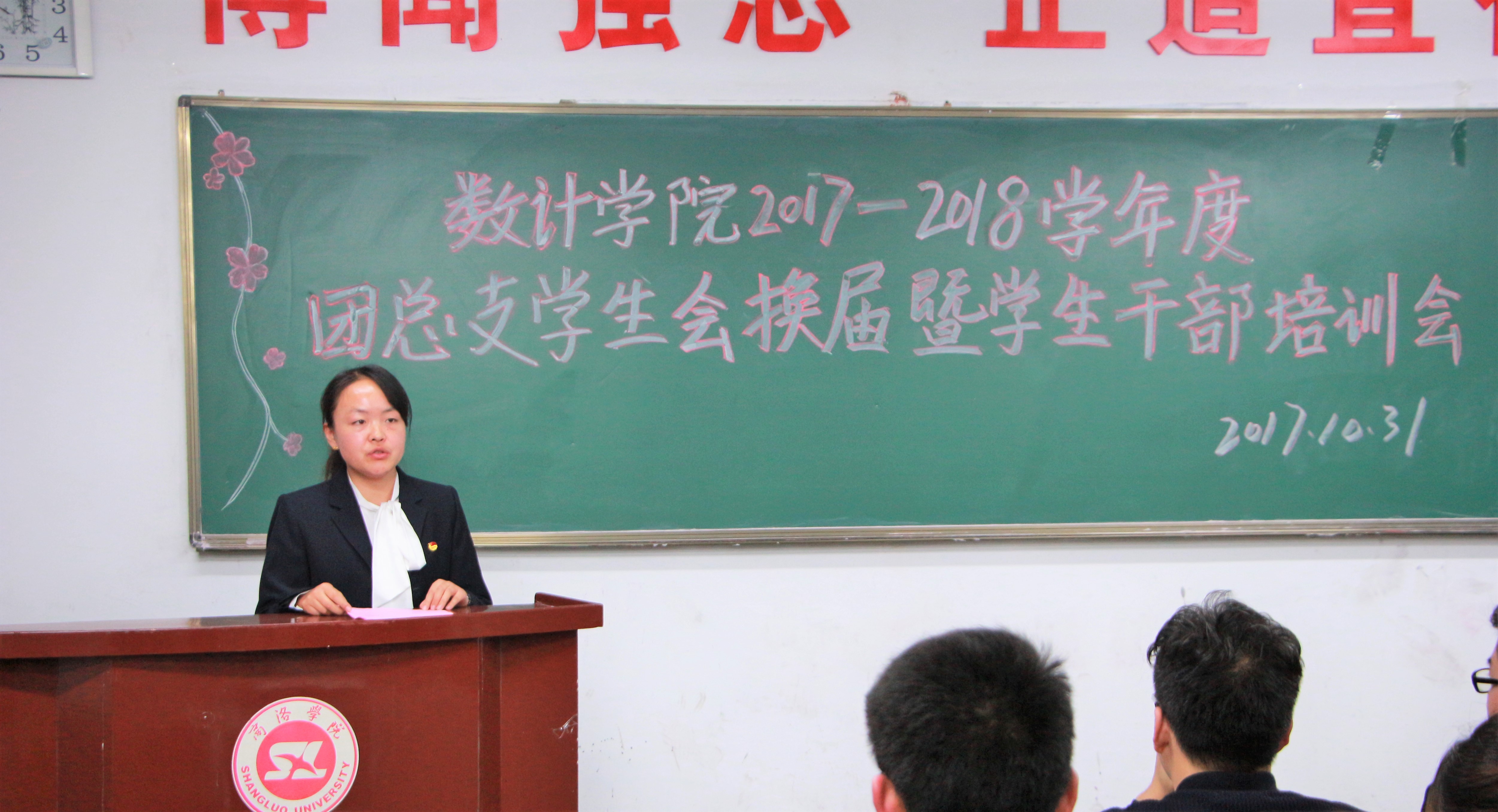 10月31日晚7:30,数计学院在二号教学楼323教室举办2017-2018学年度团总支学生会换届暨学生干部培训会。本次活动由院团总支副书记薛瑞主持,出席本次大会的有院学工办主任、团总支书记赵萍,数计学院团总支学生会全体成员以及2016级,2017级全体学生干部。