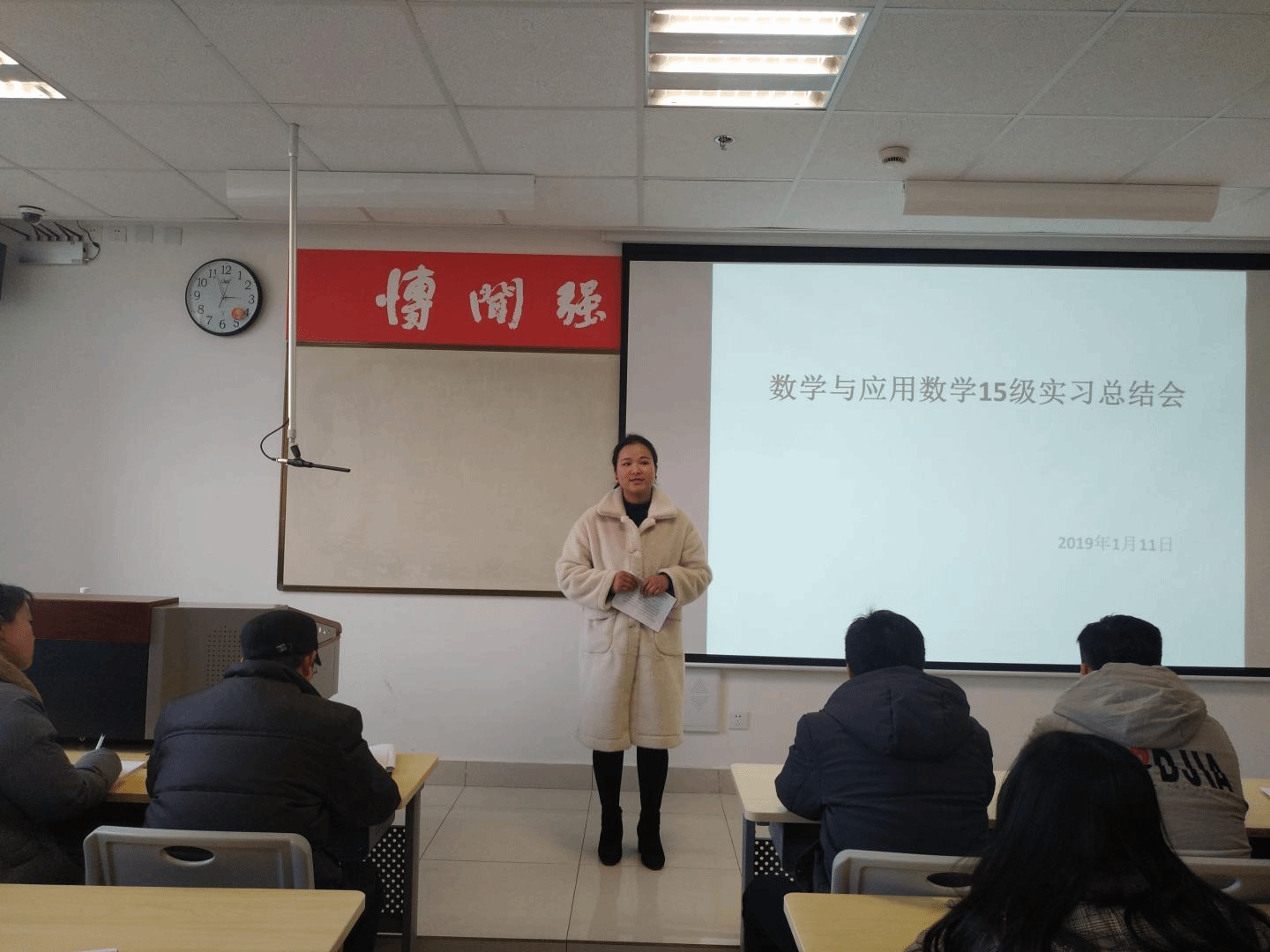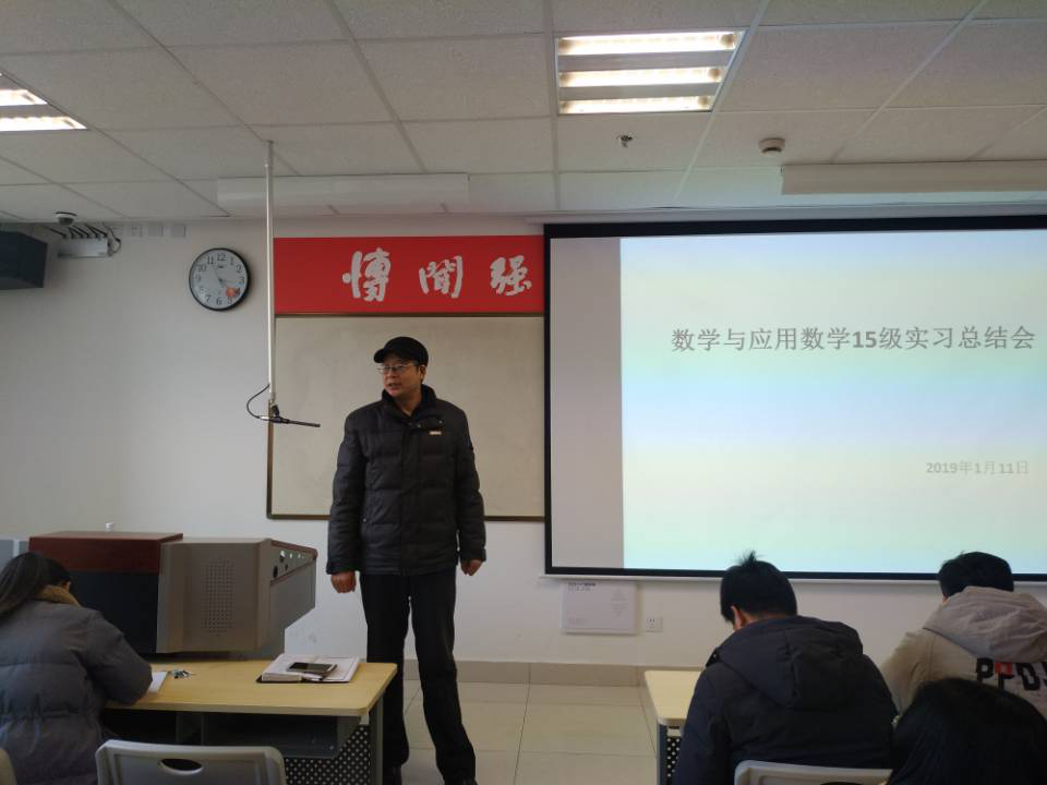 1月11日上午,2019届数学与应用数学专业教育实习总结大会在综合教学楼多媒体618室召开。副院长王念良、学工办主任赵萍、辅导员张磊老师出席了总结会。会议由应用数学系主任刘晓民主持。