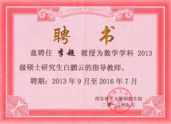 我系李超教授再次受聘为西安理工大学硕士生导师