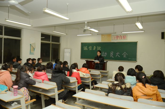 各班召开了主题班会,班主任带领同学们学习了相关制度和文件规定,要求同学们要认真备战复习、积极准备,沉着应考。通过诚信应考宣传教育活动,全体同学进一步提高了对诚信应考的认识,表示要认真复习,全力备战,诚信应考,以优异的成绩回报学院的关怀和老师的教育。