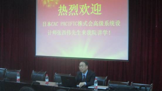 2013年5月13日下午,日本CAC DACIFIC株式会社高级系统设计师张西伟先生来我系讲学,我系全体师生在一号教学楼2号报告厅听取了张西伟先生关于“业务应用系统”的报告会。