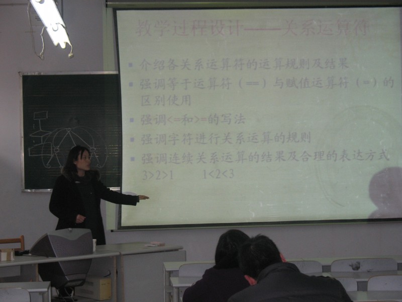 此次教研活动由公共教研室主任卢琼主持,李楠老师担任主要发言人,陈述了《C语言程序设计》中第四章选择结构程序设计的课程设计情况,详细剖析了教学特点、教学目标、重点难点、教学环境要求、课时安排、时间分配以及教学内容在课程中的地位和作用等,并对教学环节的安排、板书设计等提出自己的见解,同时也提出一些值得探讨和困惑的问题。