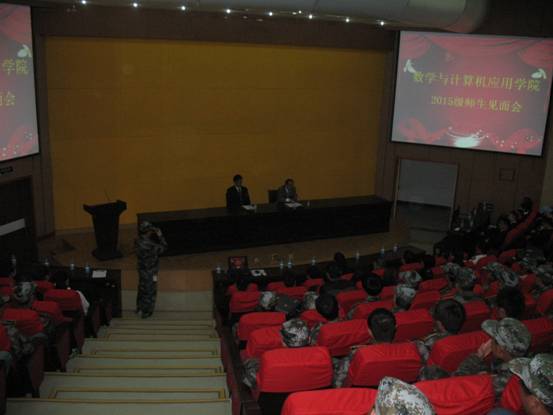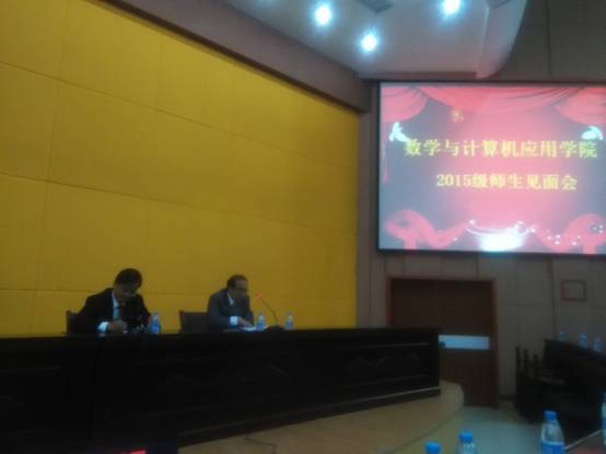 9月24日,数学与计算机应用学院2015级师生见面会在学校图书馆二楼报告厅隆重召开。学院全体教师出席见面会。2015级新生全体新生参加本次见面会。见面会由学院党总支副书记赵健教授主持。