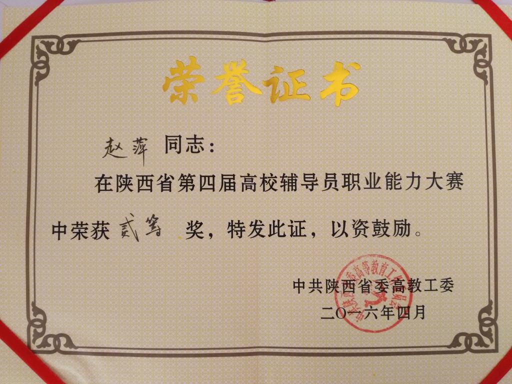 日前,由中共陕西省委高教工委主办的陕西省第四届高校辅导员职业能力大赛落下帷幕,来自全省84所高校的127名辅导员参加了比赛。我校选拔的数学与计算机应用学院辅导员赵萍、经济与管理学院辅导员于晓明代表学校参赛并获奖。其中,赵萍获大赛二等奖,于晓明获三等奖。这是我校连续三年参赛以来取得的最好成绩。