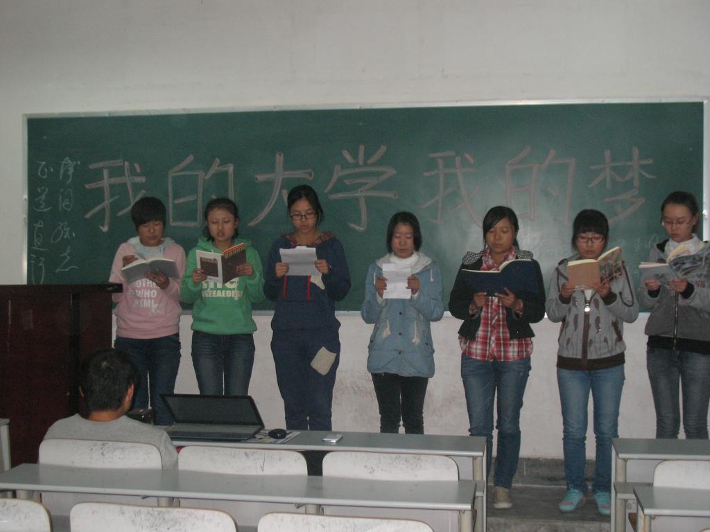 2013年10月23日晚上7点30分,我系2013级各班利用晚自习时间各班自习室开展了以《我的大学,我的梦》为主题的团日活动。
