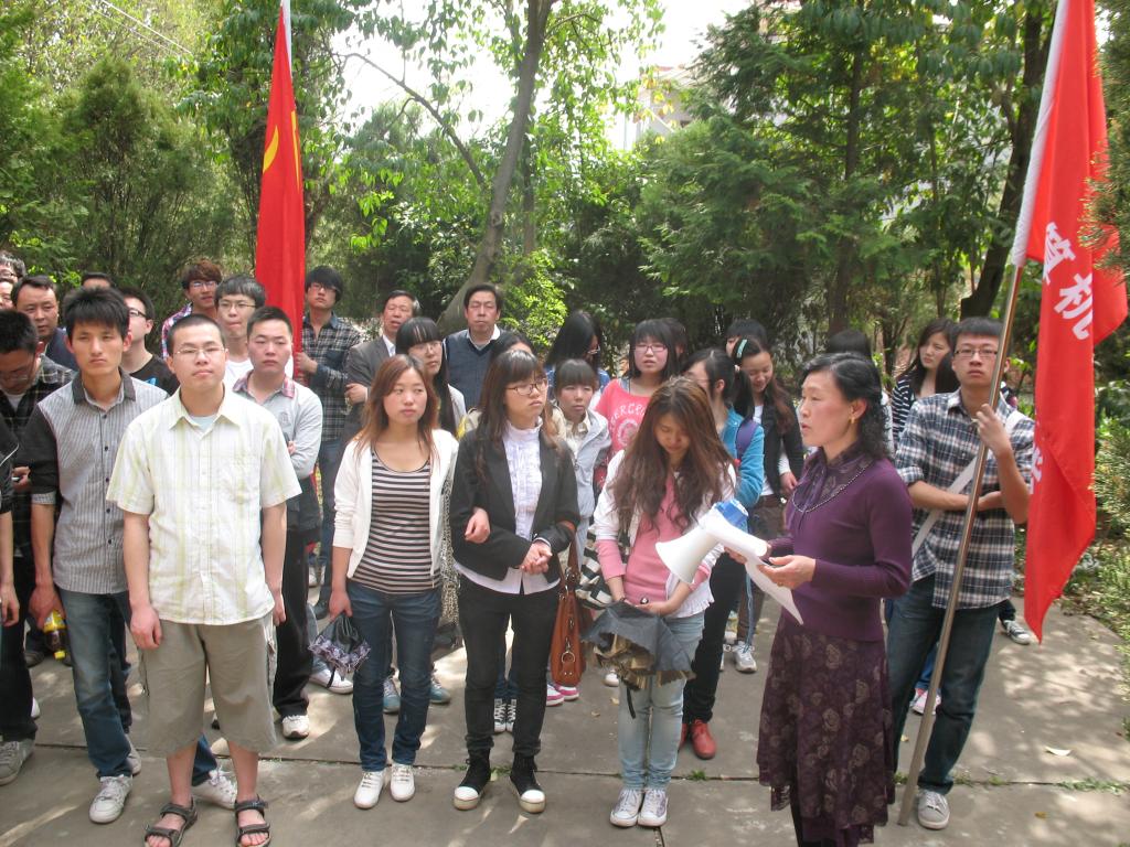 由学生党员代表我系师生为革命先烈敬献花圈。全体师生为烈士默哀3分钟,教师党员代表李艳发言。