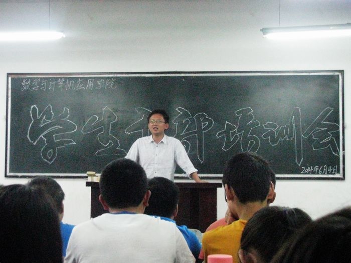 6月4日晚,我院在2号教学楼323教室举行学生干部培训会,院党总支副书记赵健、院学工办副主任郭萌、院团总支书记赵萍出席了培训会,院学生党支部全体委员、团总支学生会全体干部、各班班长团支书和全体辅导员助理共计80余人参加了培训。院党总支副书记赵健从为什么做学生干部、如何做好学生干部、怎样正确处理学习与工作之间的关系等方面对学生干部进行了详细的解读和阐释.