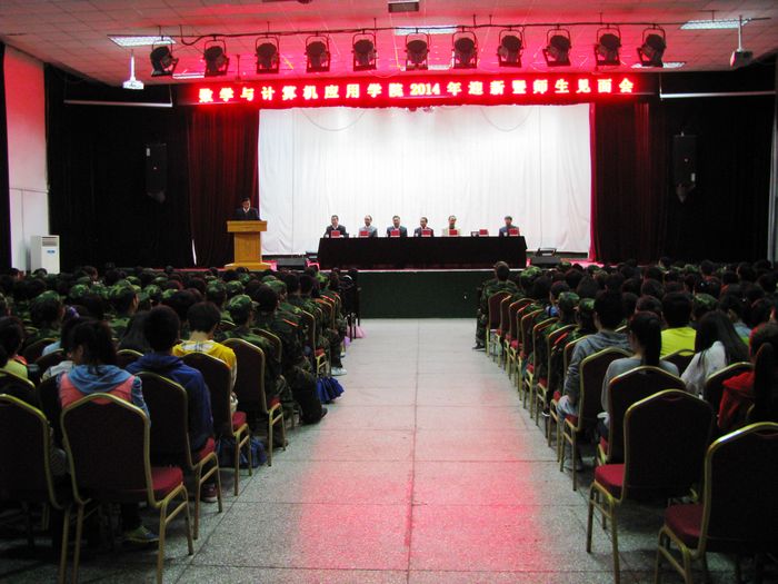 9月17日晚,我院在大学生活动中心隆重举行数计学院2014年迎新暨师生见面会。我院刘端森教授、李超教授、丁争尚教授、院党政领导、全院教师以及全体2014级新生参加了见面会。见面会由副院长刘爱军主持。