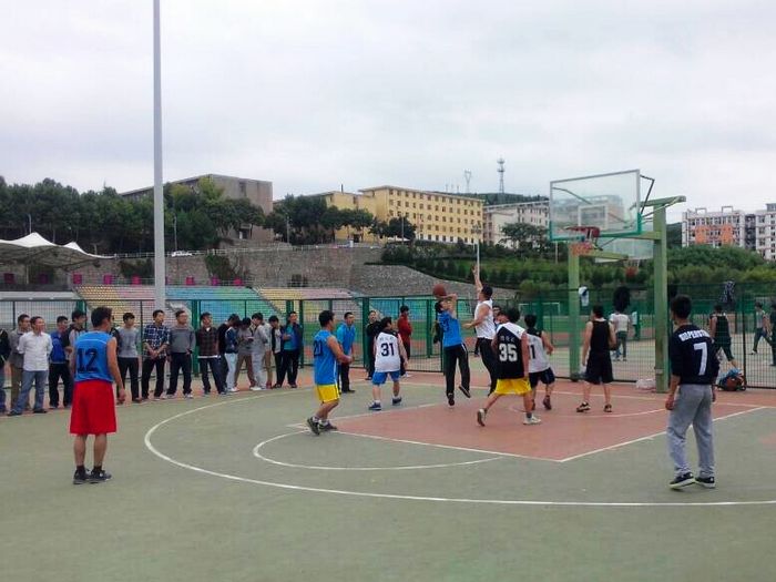 9月23日下午,我院师生与“国培计划”——初中数学学科培训学员进行了一场篮球友谊赛。在比赛中,双方队员充分发扬“友谊第一,比赛第二”的体育精神,团结协作,奋勇向前,赛出了成绩和水平,场外的拉拉队员也积极为双方队员加油喝彩,气氛十分热烈。