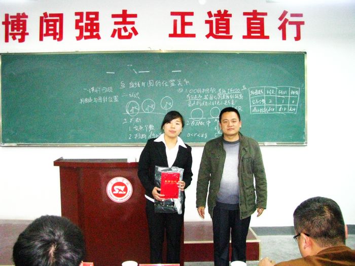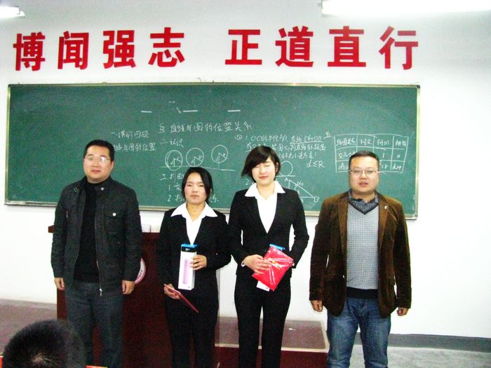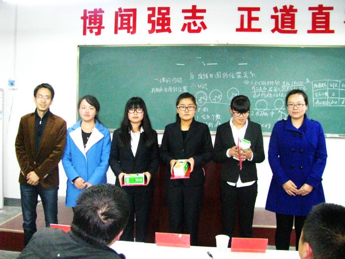经过初赛和复赛产生的10名选手在台上讲课思路清晰,板书设计合理,通过与台下观众互动,赢得台下师生阵阵掌声。经过两个小时的比赛,各位评委把关严格,给分准确,点评精辟,最终产生了各类奖项。参赛选手们纷纷表示:通过这次比赛,她们的能力得到了充分的发挥,个人学识得到了进一步的提升,希望这类比赛以后能够多举办,为同学们个人才能的锻炼和提高创造更多机会。