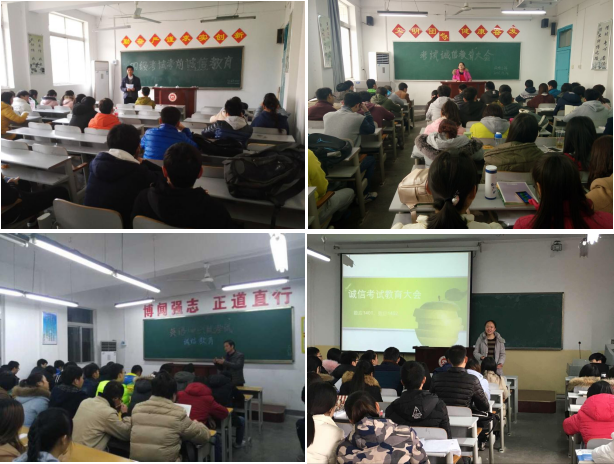 在大学英语四六级考试和期末考试即将来临之际,为了鼓励广大同学积极备考,树立诚信考试观念,贯彻严格的考风考纪,使同学们认识到诚信的重要性和培养同学们的诚信意识,2016年12月13日—15日,数学与计算机应用学院在全院范围内开展了诚信考试教育系列大会,会议由各班辅导员主持。