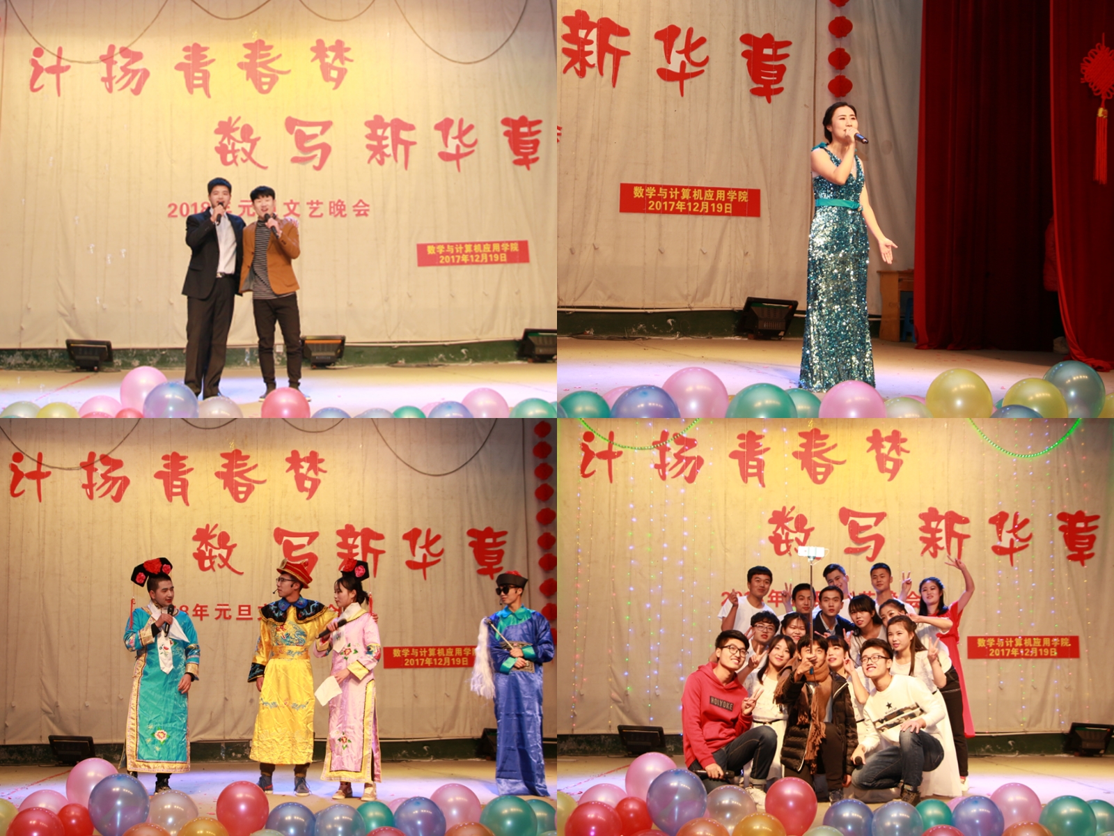 在主持人的祝愿词“祝激流勇进的数计学院再创新的佳绩,再铸新的辉煌”和大家热烈的掌声中本次元旦晚会落下帷幕。一个月的精心准备,晚会在这个美好的夜晚完美谢幕。我院学子用热情、用智慧、用责任、用梦想以自己的方式“数写青春”,用自己的激情和活力“计往开来”,我们将用独特的方式描绘属于数计学院以及我们的美好明天!