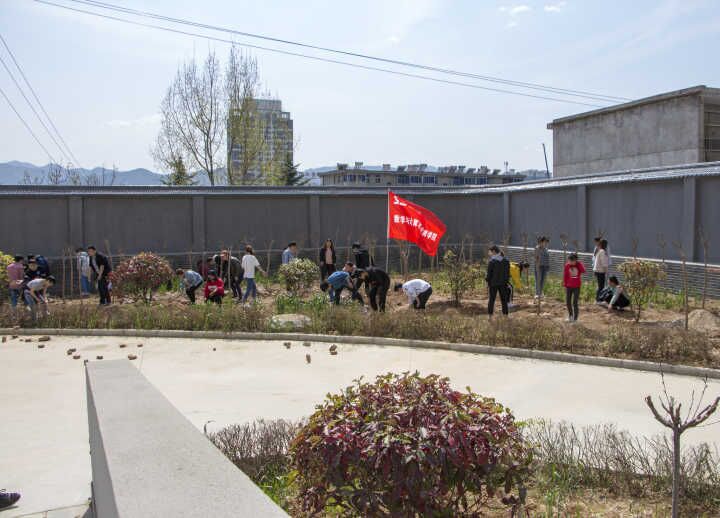 在院学生会主席南江和团总支副书记雷雨萌的组织安排下,草坪中、树丛下,都有同学们的身影。他们半蹲着,动作麻利地拔草、埋头捡垃圾、清理石块,干的如火如荼。不一会儿,每人面前都清理出一堆杂物,随后男生们都拿着竹篓将杂物抬向垃圾车。虽烈日当空,骄阳似火,大家干的汗流浃背,你脱外套,我卷衣袖,一点都没有停歇的意思,干劲十足。同学们认真劳动的样子是骄阳下最亮丽的风景。
