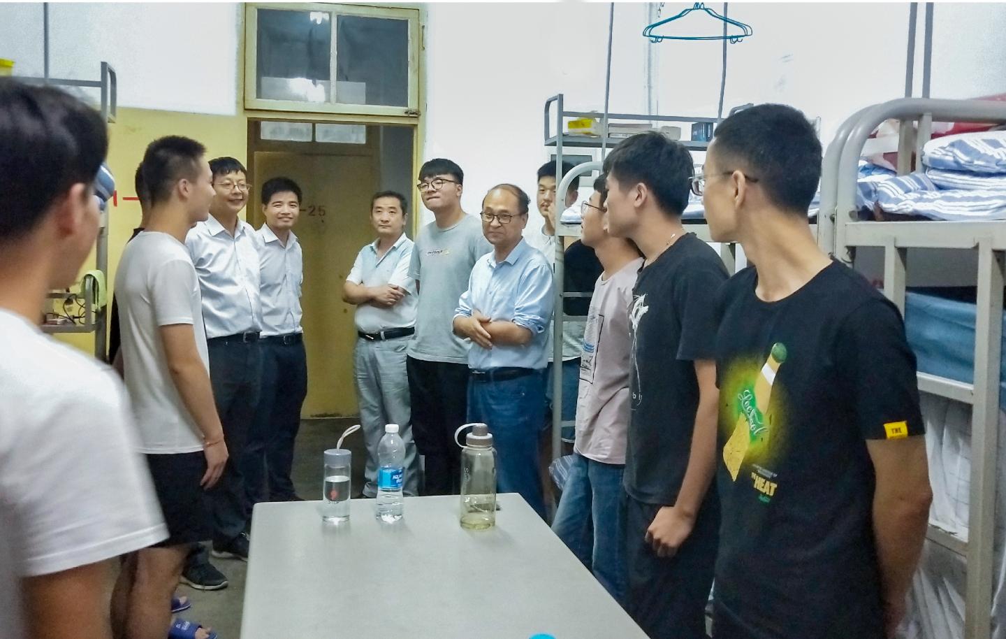 各位老师来到新生宿舍之后,与同学们进行亲切交谈,询问了他们的家乡情况、兴趣爱好以及到校后的适应情况等等,每一句问候都温暖着在场新生的心,尤其对来自外省的同学,老师就他们的饮食、环境适应等情况更是细心交谈,并耐心的向他们介绍各专业班级的班主任、辅导员以及一些校园文化生活相关的基本情况,同时耐心的解答他们提出的各类问题,使大一的新生们对接下来的大学生活有了一定的了解。同时,老师们也提醒学生晚上减少外出,注意保护自己的人身财产安全。