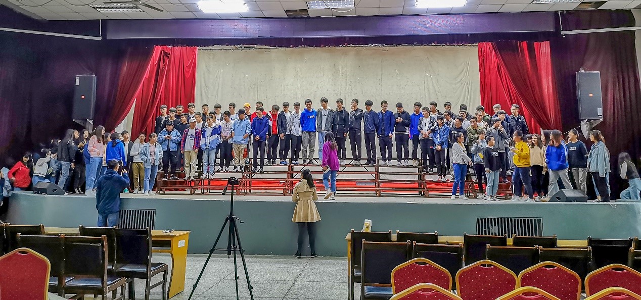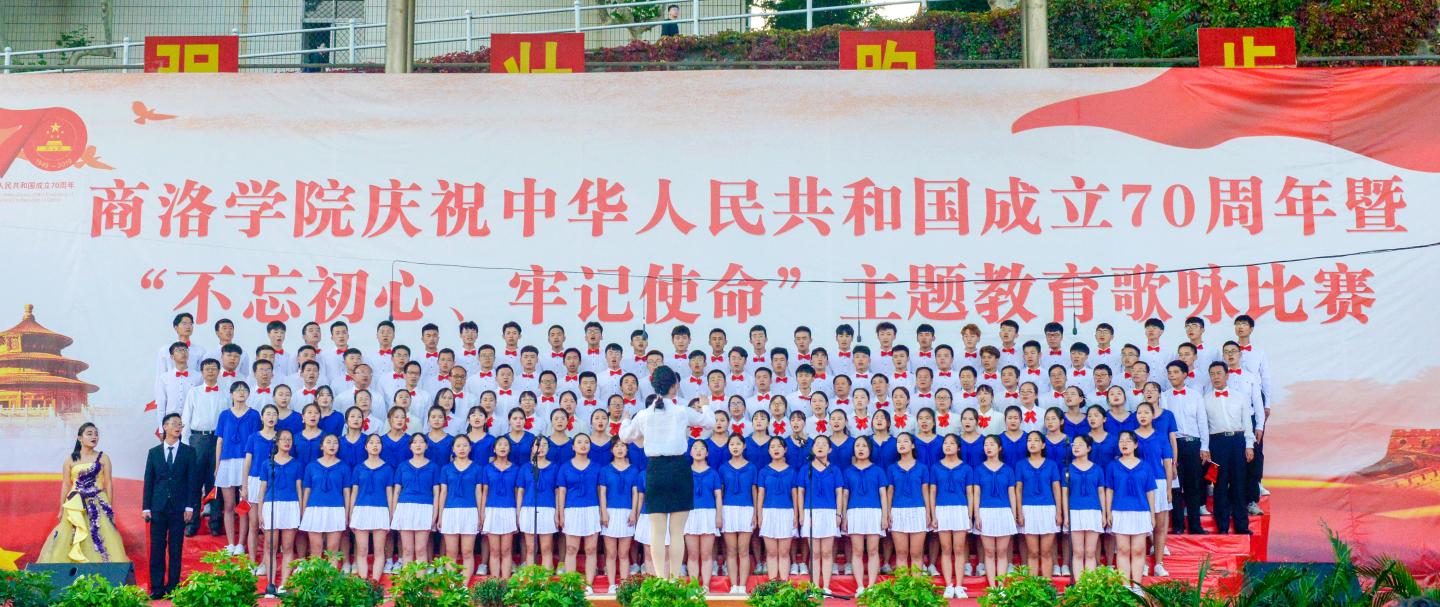 为庆祝中华人民共和国成立70周年,激发师生们的爱国情怀,我校于2019年9月25日下午在体育场举行以“礼赞新中国,放歌新时代”为主题的歌咏比赛,全校共11支代表队参赛,2019级全体新生参与其中。