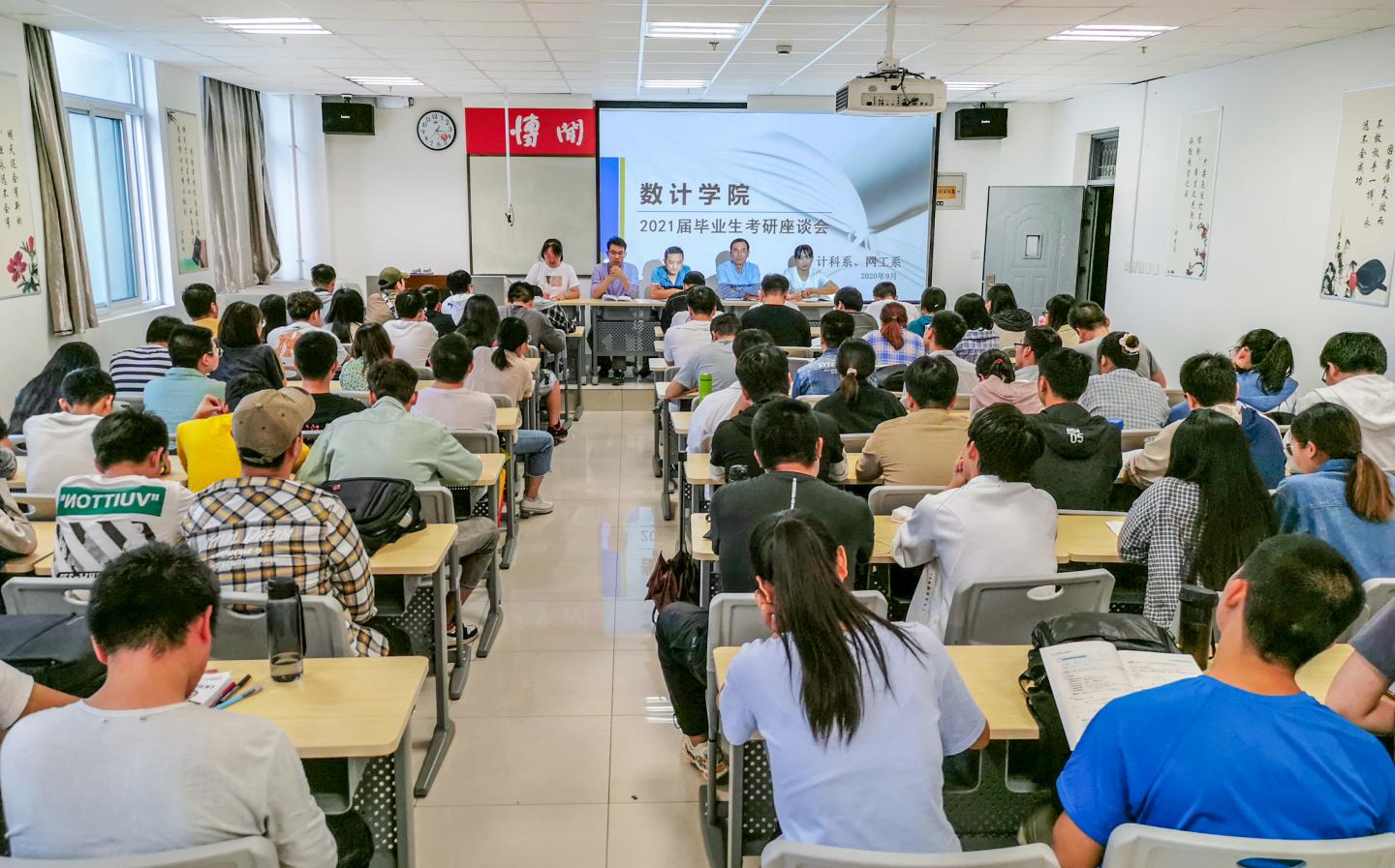 在数学系座谈会场,老师向同学们介绍了当前的就业与考研形势以及考研后的发展前景,为同学例举了一些考研的好处,解答了同学心中许多对考研的疑惑,接着各位老师就现阶段不同考试科目如何巩固知识和临场答题提出了建设性建议,叮嘱大家在考场上要沉着应对,并针对考研冲刺期如何调节心理焦虑等问题向同学们传授经验,提出解决办法。在计算机系以及网络工程系的座谈会场,老师们结合自身经历,分享了他们的考研故事,对如何考研,如何选择学校以及考研冲刺期应该注意的事项做出了指导,鼓励大家设立切合自身的目标,定制专属的冲刺期考研计划,同时强调要利用好历年真题的参考价值,熟悉考试模式,做好必要预测。激励同学们要学会树立信心,找准自己的方向,并对同学们的考研之路表达了关心和期望。