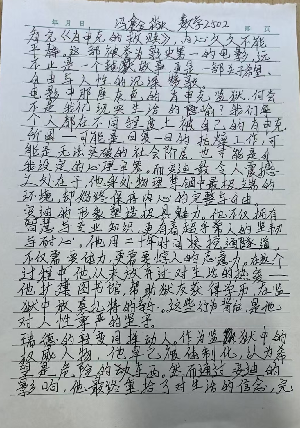 作为军训期间的特色文化活动,本次观影旨在将纪律训练与精神引领相结合。电影《肖申克的救赎》以监狱为背景,讲述主人公安迪在绝境中不放弃对自由的追求、用智慧与坚韧打破命运桎梏的故事,精准契合军训“磨砺意志、锤炼品格”的核心目标。