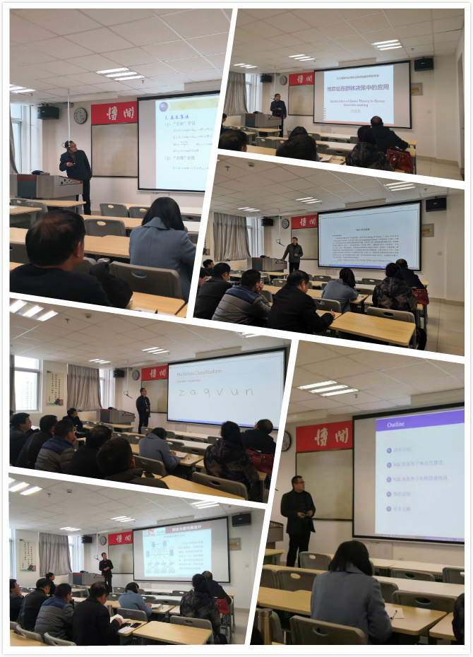 数素数指数模的一些同余式》、岳毅蒙博士汇报了《VRP算法综述》、万世昌博士汇报了《博弈论在群体决策中的应用》、赵鹏军博士汇报了《共生生物搜索算法研究》、王晓博士汇报了《整数流域圈覆盖》、张东翰博士汇报了《图的邻和可区别全可选》、赵锐博士汇报了《基于超像素分割和图像回归的SAR图像变化检测》、孔亮博士汇报了《算子代数上几类映射的研究》、颜军博士汇报了《基于小波变化的边权重差分隐私保护方法》。汇报之后,与会的部分教师对研究方向和规划进行把脉,帮助找准问题,并针对各人实际情况提出了合理的建议。