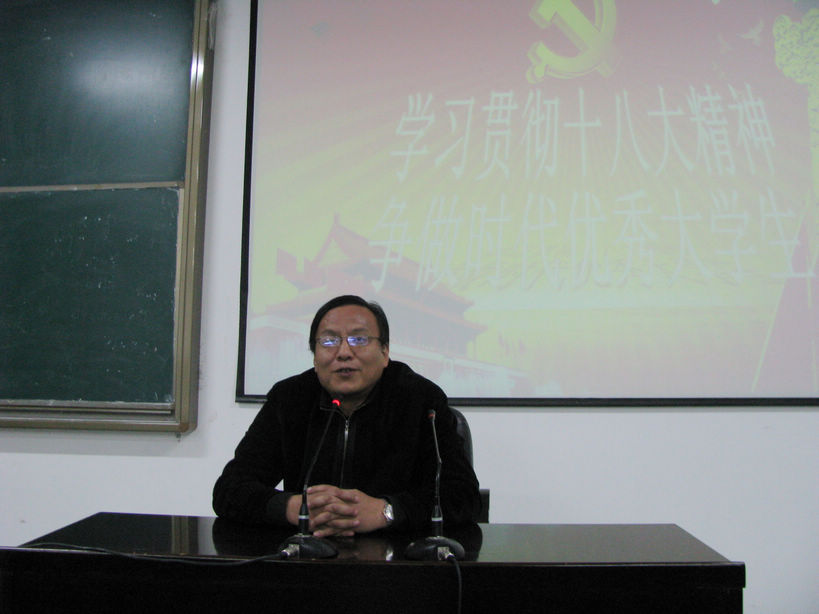 11月19日,我系学生党支部在报告厅三组织学生党员开展了“学习贯彻十八大精神,争做时代优秀大学生”主题教育活动,系党总支副书记赵健、系党政办副主任郭萌、辅导员李菲及全体非毕业班正式党员、预备党员和积极分子参加了学习活动。