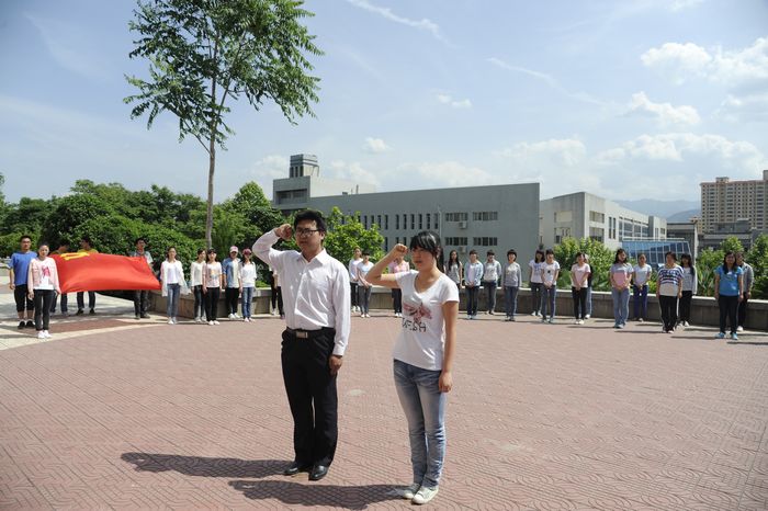 5月18日下午,我院学生党支部在二号教学楼前举行了隆重的入党宣誓仪式,张登铭、屈凡等12名优秀学生站在党旗下庄严宣誓,光荣加入了中国共产党。