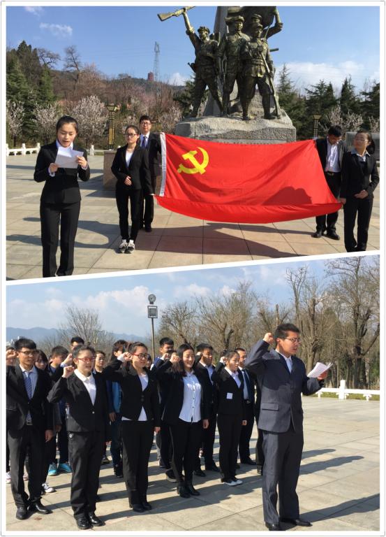 早上9点学生党支部副书记钱金鑫带领大家到达了金凤山商洛革命烈士陵园。大家怀着无比敬重的心情在烈士墓前进行了扫墓、敬献花圈、默哀等活动。随后又在红军广场举行了预备党员入党宣誓仪式。全体人员庄严肃立,伴随着高亢的国际歌声之后,由组织委员袁海通宣读接收新党员文件及名单,纪检委员杨志强带领大家进行新党员宣誓活动。