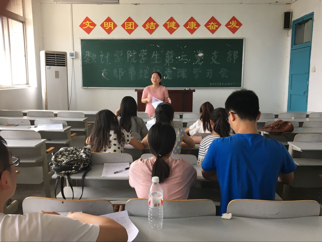 按照学校干部人事处《关于“两学一做”学习教育第二阶段工作安排的通知》精神和《关于组织学习讨论习近平总书记“七一”重要讲话的通知》要求,7月13日下午4:00,数计学院学生第二党支部组织全体党员在2号教学楼303教室集中学习讨论了习近平总书记“七一”重要讲话精神,支部书记陈倩老师做了“两学一做”学习教育专题党课。