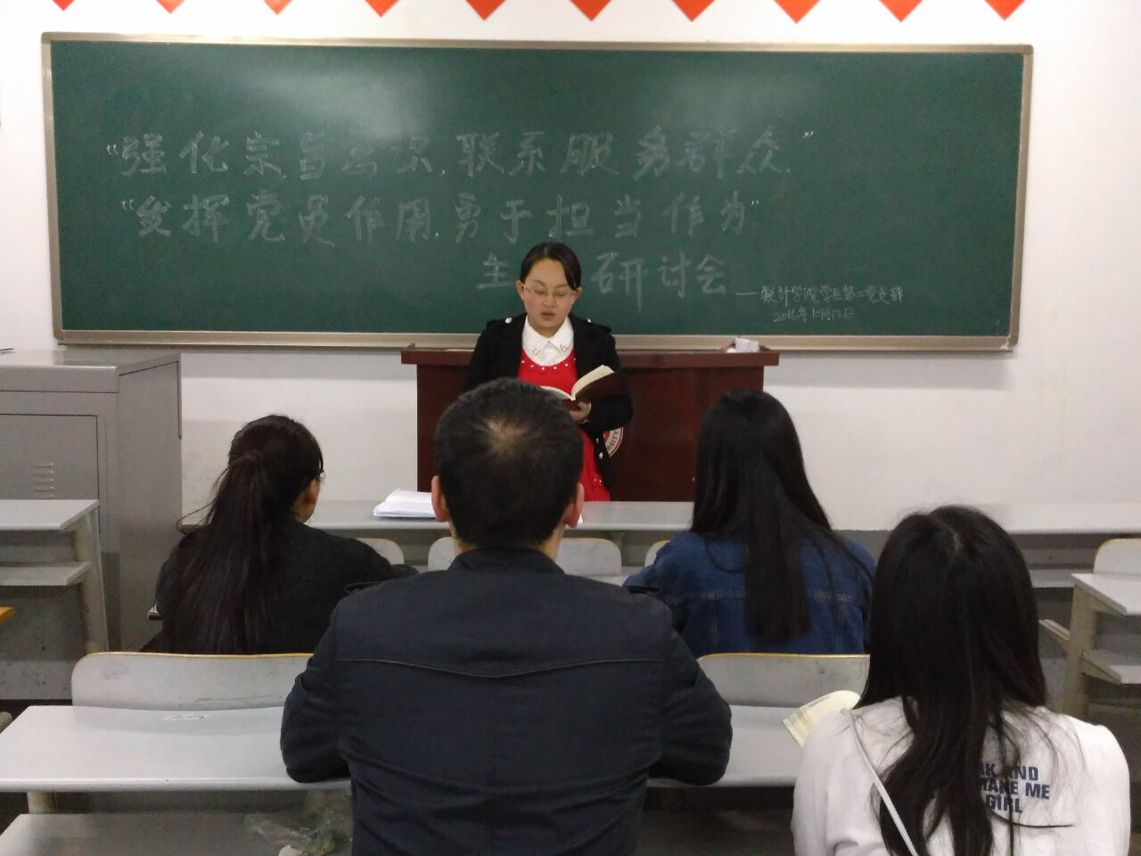 首先,各支部书记强调要“强化宗旨意识,联系服务群众”、“发挥党员作用,勇于担当作为”,对党忠诚是发挥党员先锋模范作用的前提,忠诚于党,要体现在学习、工作作风上。每一位党员要强化党员意识、高标准、严要求,不能把自己等同为普通群众。各学生党员应自觉做到坚定正确的政治方向,维护好党章党纪,始终做到旗帜鲜明、立场坚定;要坚决与各种错误言行做斗争,不断锤炼和提升自我的党性修养。