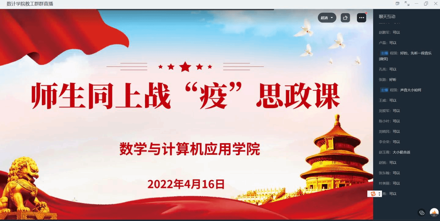 为进一步做好校园封闭管理期间疫情防控工作,提高师生思想认识和防控知识,提振战“疫”必胜信心,按照学校部署安排,4月16日下午,我院组织全体师生共计1619人同上一堂战“疫”思政课”。