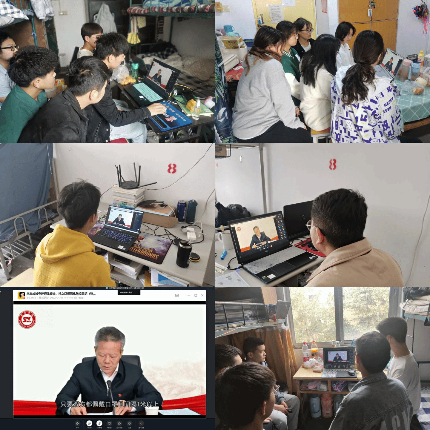 本次战“疫”思政课以“宣讲疫情防控知识,解读学校防控政策”为主题,校党委书记张志昌,校党委副书记、校长范新会,校党委副书记彭虎军,校后勤保障处医务室主任任秀梅四位老师,分别作了题为“众志成城守护师生安全 持之以恒强化防控意识”“抗疫有我 争做表率 勇担新时代青年使命”“校园封闭化管理同学们应该怎么办”“疫情防控期间师生学习生活健康指南”的宣讲,教育广大师生厚植爱国情怀,坚定理想信念,树立大局意识和规矩意识,保持健康积极的态度,科学防控疫情,共同努力,坚定信心,共克时艰,继续做好封校期间疫情防控各项工作。
