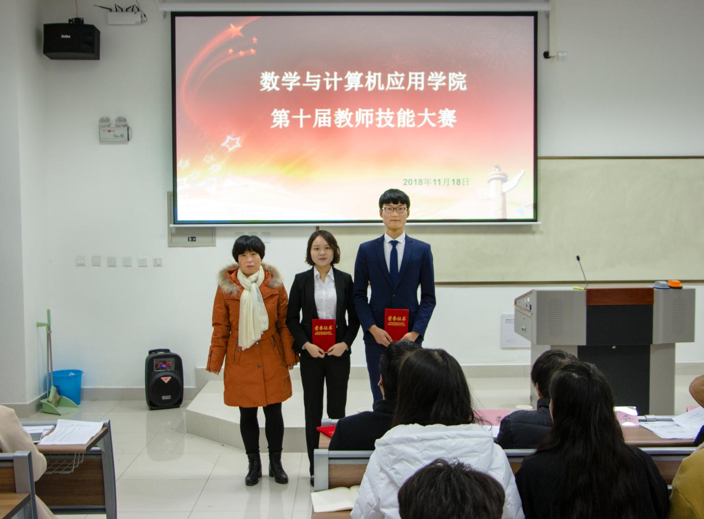 经过激烈对决,数学1602班赵艳青获得本次比赛一等奖,统计1701班孟雨欣和数学1801班闫凯获得二等奖,数学1804班周婉婷、数学1702班刘亚红和数学1602班黑姣获得三等奖,网工1802班亓玉通、数学1803班高格格和数学1804班高洁获得了优秀奖。活动最后,李会荣老师对比赛过程中同学们的教学特点和洒脱自如的教学态度给予了肯定和赞扬,并鼓励同学们以后能够多参加此类活动以提高自己的教学技能。