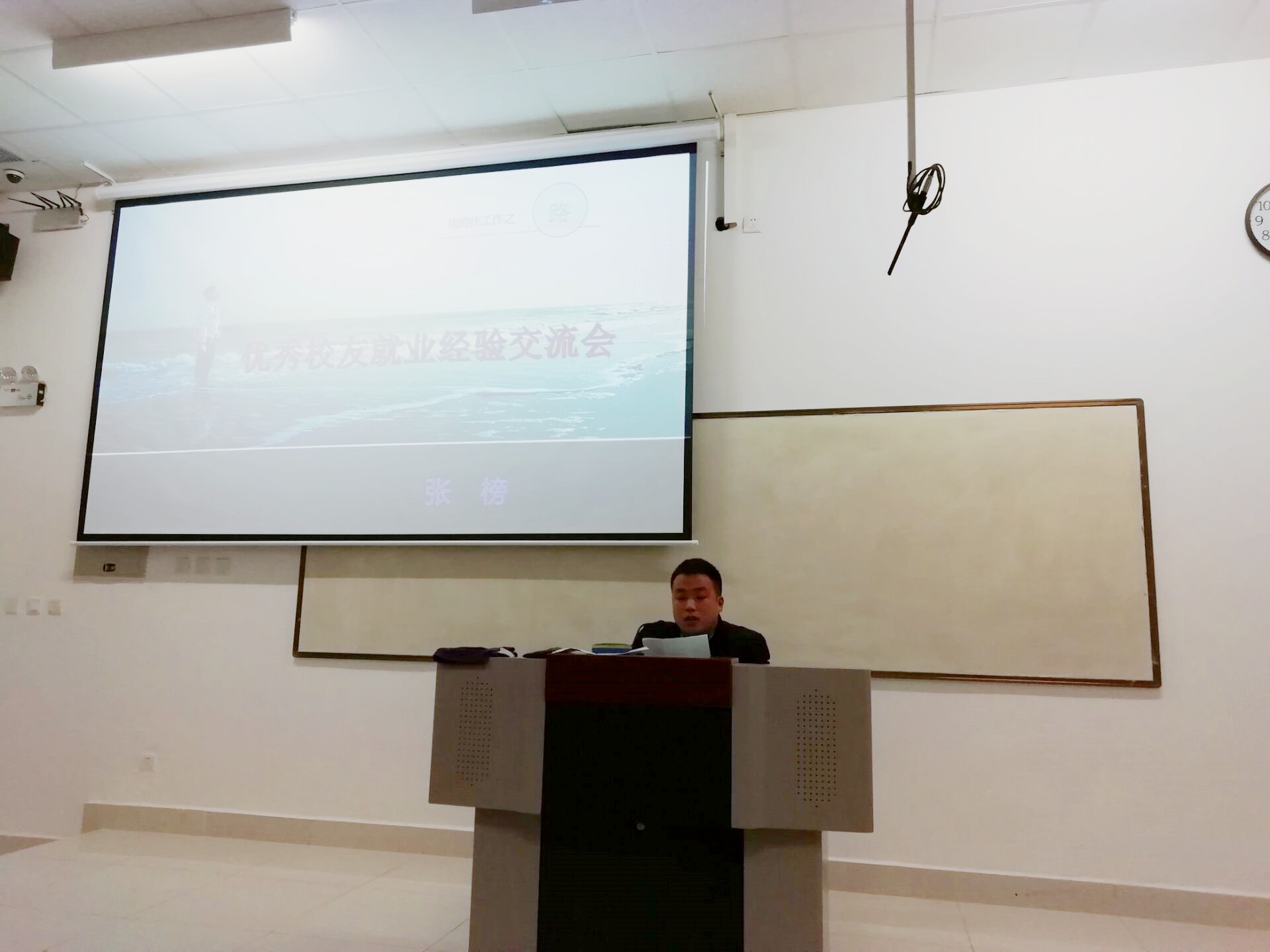 12月22日16时,优秀校友、山阳县信毅学校初中部数学组组长张榜应邀返校为我院16、17级数学与应用数学专业170余名学生分享了踏入社会后的求职和工作的经验。