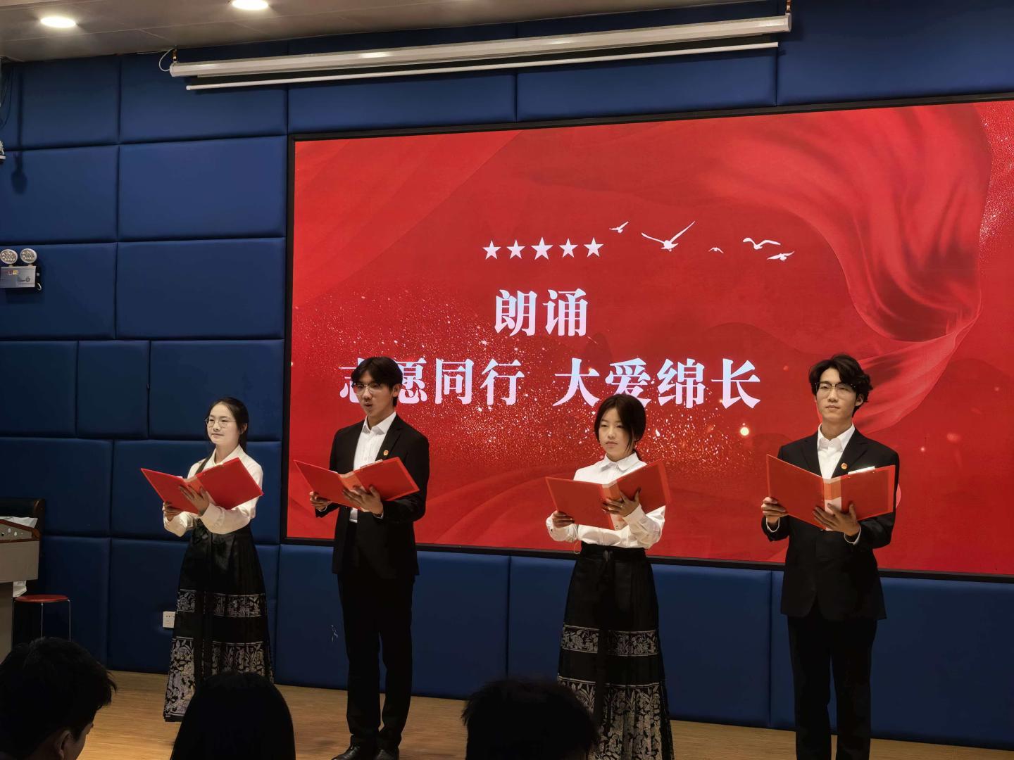 活动在庄严的国歌声中拉开帷幕。“青春明志・志愿领航” 环节,数学2305班赵嘉怡同学以“弘扬志愿精神,践行青春担当”为题展开主题宣讲,结合习近平总书记的贺信精神、志愿短片《有光照亮的地方》以及我院志愿服务队的实践故事,呼吁团员青年投身志愿服务。“青春抒怀・志愿传情”环节中,诗歌朗诵《志愿同行,大爱绵长》以深情笔触传递志愿温情,小型合唱《有我》用激昂歌声彰显青年担当,赢得现场阵阵掌声。