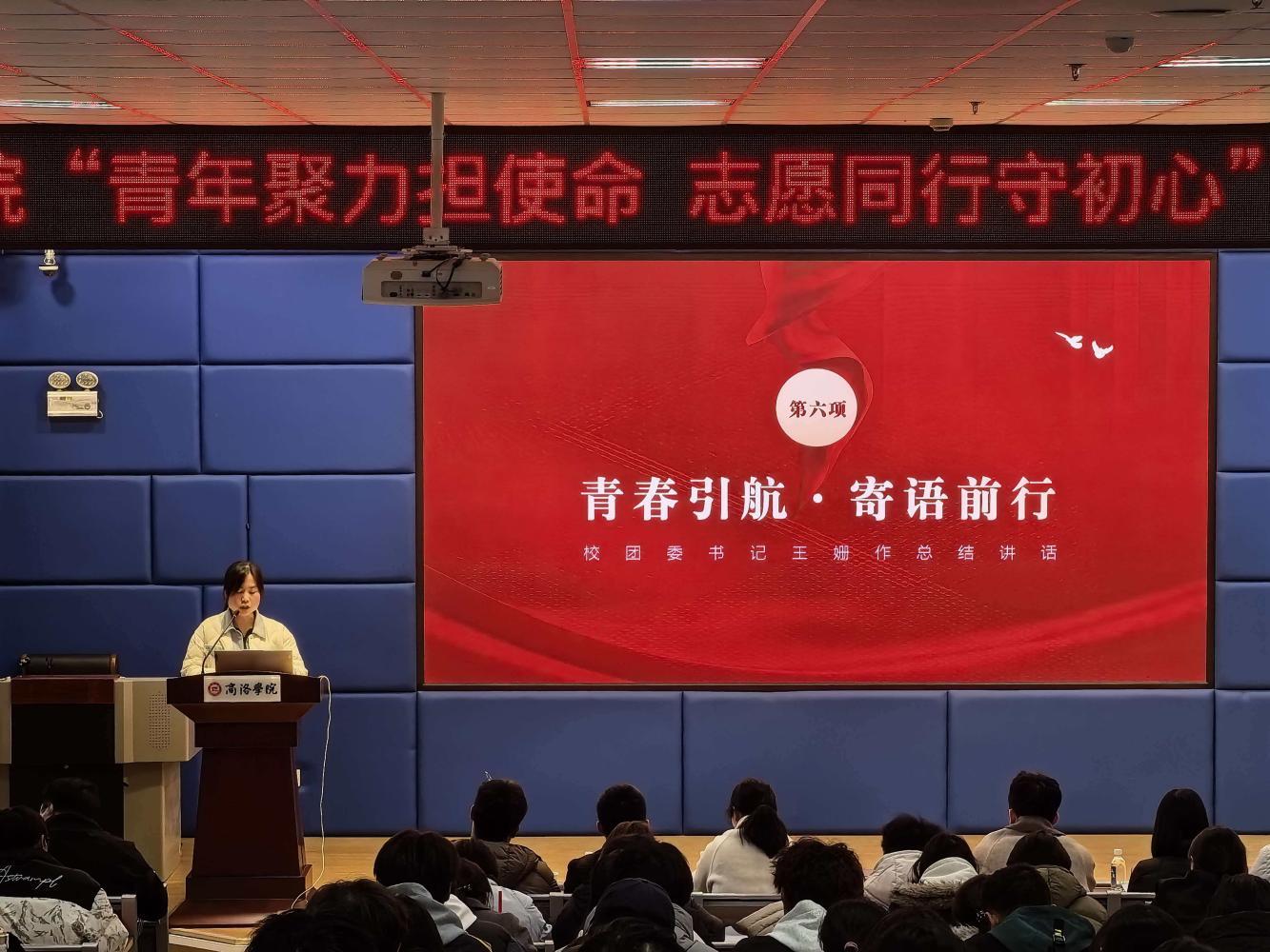 活动尾声,校团委书记王姗作总结讲话。她充分肯定了本次活动的意义与成效,寄语青年将爱国共情转化为志愿行动,把活动热情转化为成长本领,让入团誓词融入日常善意;号召大家以脚步丈量商洛大地,用善意温暖身边人事,让志愿之光随青春闪耀。最后,本次活动在激昂的中国共产主义青年团团歌中圆满落幕。