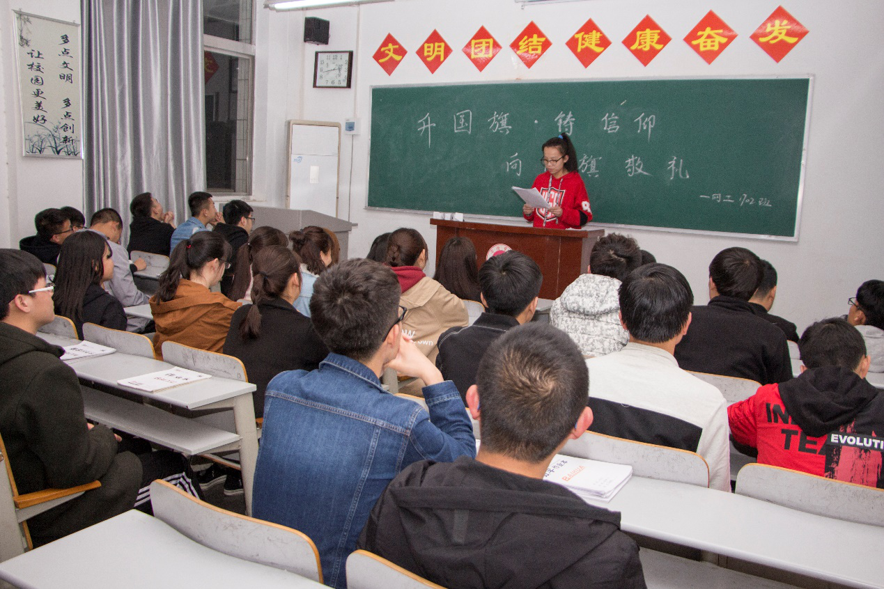 本次活动由2017级各班团支书主持,为大家详细的讲述了中华人民共和国国旗对于我们的重要性,以及国旗上的图案和含义,让大家对于国旗的重要性有深刻认识。为大家朗读了《中华人民共和国国旗法》中的相关法律法规,如对国旗的使用和侮辱践踏国旗等行为的相关处罚等。使大家能够理性而深刻地意识到保护国旗,维护国旗的尊严的重要性。同时,对我院本学期的升旗活动安排进行了说明,本学期第七周和第十七周为我院升国旗时间。最后向大家强调了校内有关守护国旗的规定,同学们一致称赞此次活动的深刻意义,并保证一定会积极维护,保护国旗。