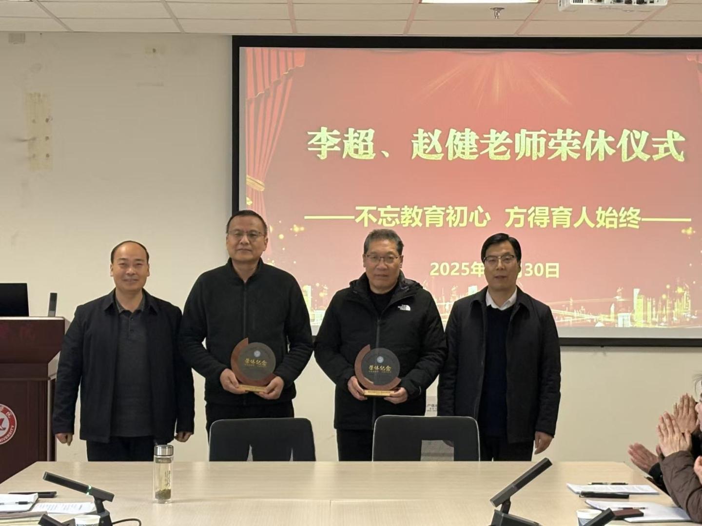 李超、赵健两位老师也发表了荣休感言。他们回顾了自己的教育生涯,感慨万千,对学院的培养和同事们的支持表示感谢,同时也对学院未来的发展寄予了厚望。