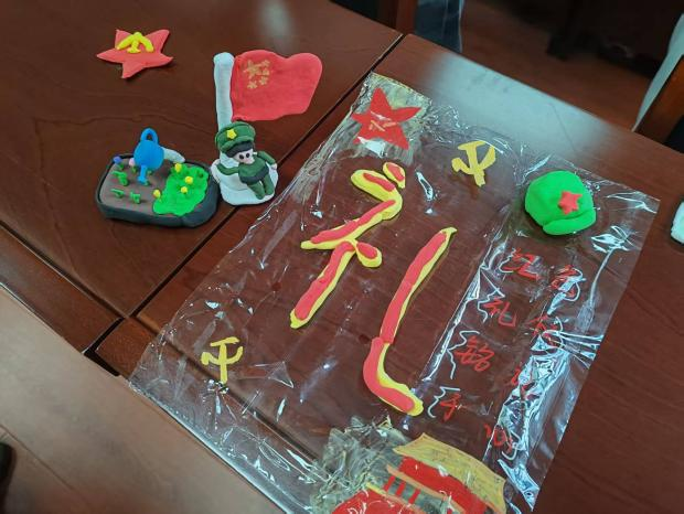 “红色传薪火,礼仪正言行”环节,志愿者组织孩子们分组讨论,引导在情景演示中学习文明礼仪,分享感悟。随后围坐黏土桌前创作,“‘礼貌之星’边角捏尖些?”“勋章加书本图案?”……想法碰撞间,大家揉捏搓粘,塑造礼仪信物。黏土轻拍与欢笑声中,手工作品似魔力使者,被精心摆放,更在孩子心间刻下守礼印记,提醒养成好习惯。