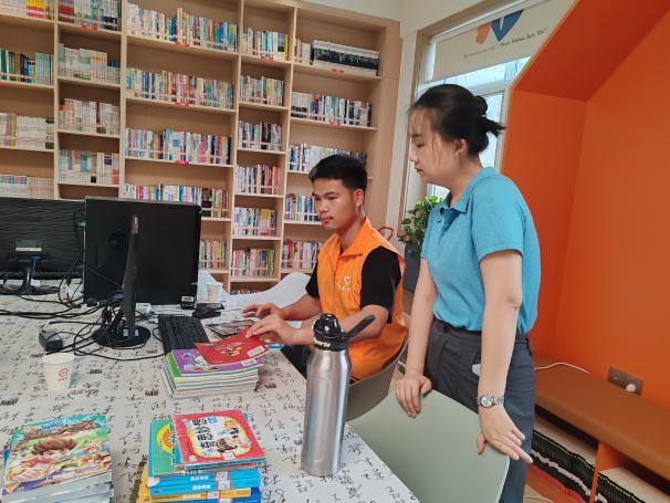 “电子书录入,阅读路拓宽”环节,志愿者们分组围在图书旁忙碌。一本本被取出,破损页角细心抚平,散乱卷册耐心归整……难题在协作中化解,大家分工分类、登记编号、录入信息,再将纸质书信息“搬”进电子库。每完成一批录入,书页翻动声与轻快交谈声交织,一本本图书像有了翅膀,为孩子们拓宽阅读路,也播下爱书种子。