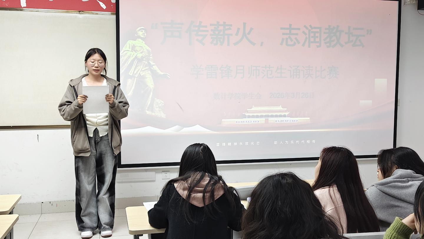 三月春风浸润校园,雷锋精神代代赓续。为深入践行雷锋精神,厚植师范生育人初心与职业情怀,3月26日晚19:30,我院“声传薪火,志润教坛”学雷锋月师范生诵读比赛初赛如期举办。本次活动以经典诵读为载体,让青年学子在文字与声韵的交融中感悟奉献精神、筑牢教育使命,为校园学雷锋系列活动增添了浓郁的青春气息与文化底蕴。
