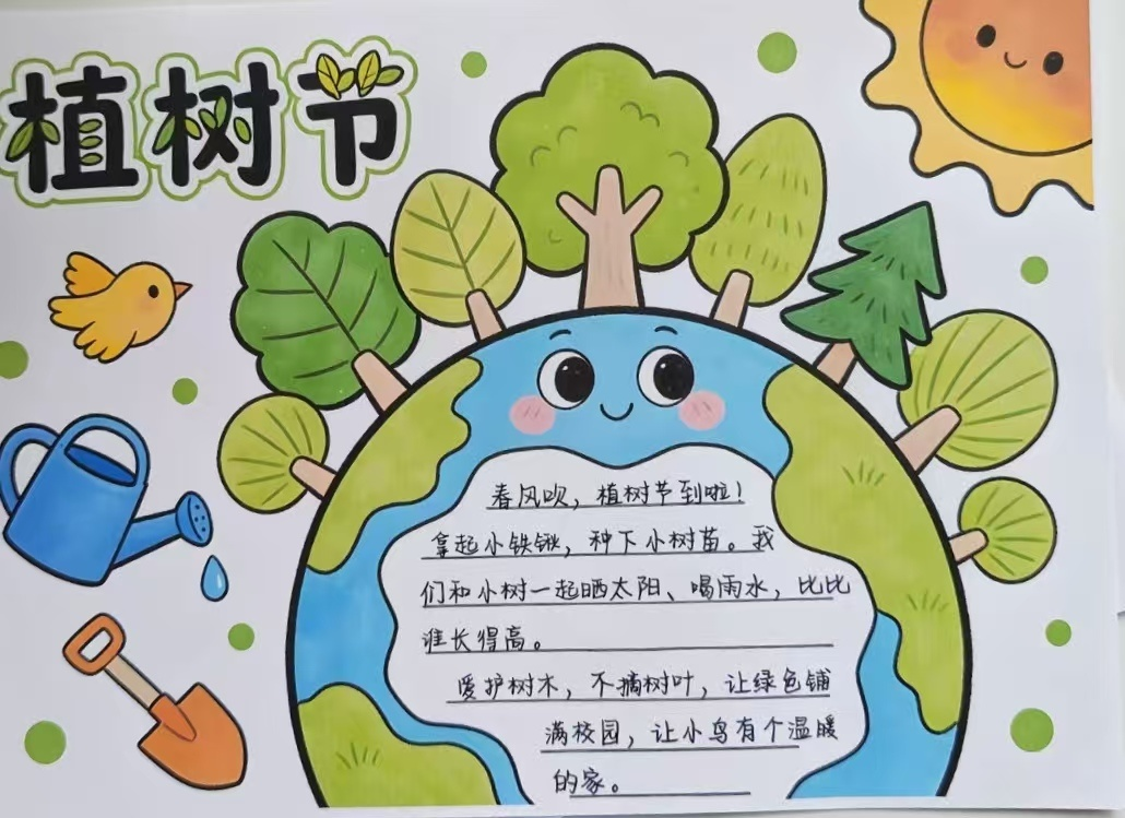 大数据2401班团支部的同学通过手抄报,学习宣传植树理念。