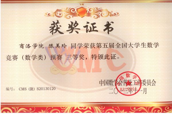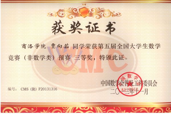 下一条:陕西省教育厅关于公布2013年全国大学生数学建模竞赛陕西赛区获奖名单的通知